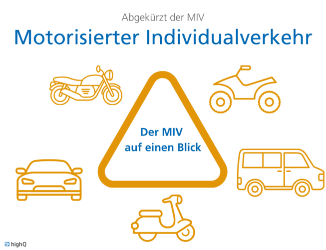 Diese Fortbewegungsmittel werden auch als motorisierter Individualverkehr – kurz MIV – bezeichnet. Also Pkw, Motorrad, Roller oder auch das Mofa.