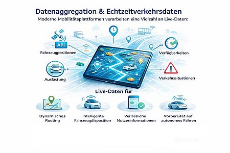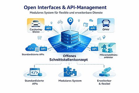 Eine Mobilitätsplattform ist ein intermodales Informations-, Buchungs- und Abrechnungssystem. Durch ihre offene Systemarchitektur bündelt sie verschiedene Mobilitätsanbieter modular.