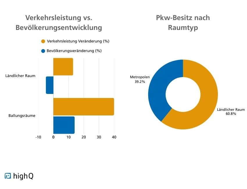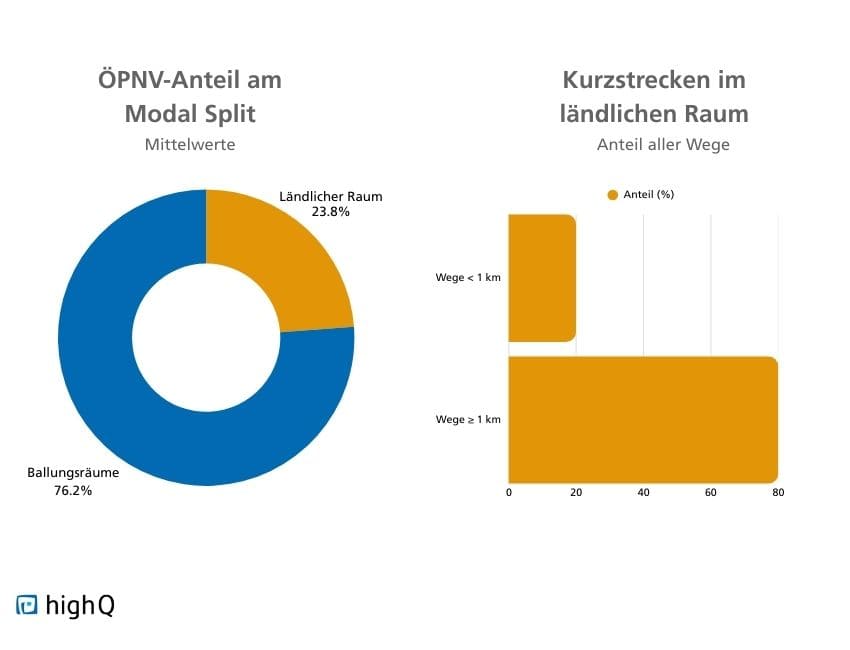 Hier ist eher ein Rückbau des Angebots als eine Erweiterung zu beobachten [1][3]. Zudem ist die Affinität zum eigenen Pkw in ländlichen Gebieten deutlich höher ausgeprägt als in Ballungsräumen.